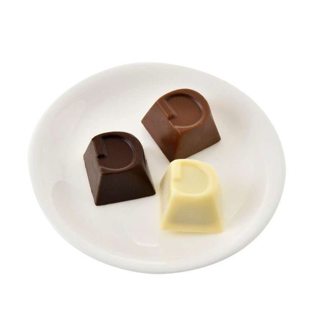 包装有”牛奶”、”黑巧克力”和“白巧克力果仁糖“三種口味。
